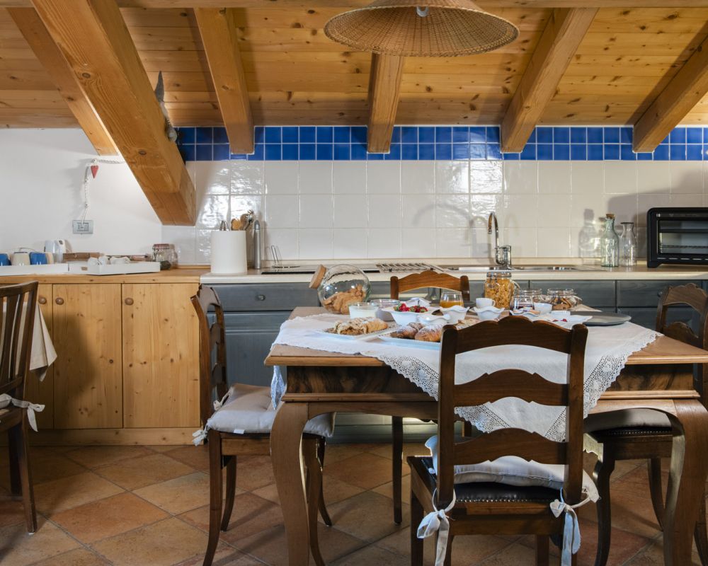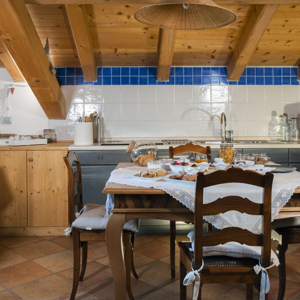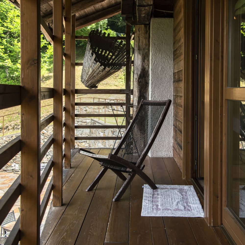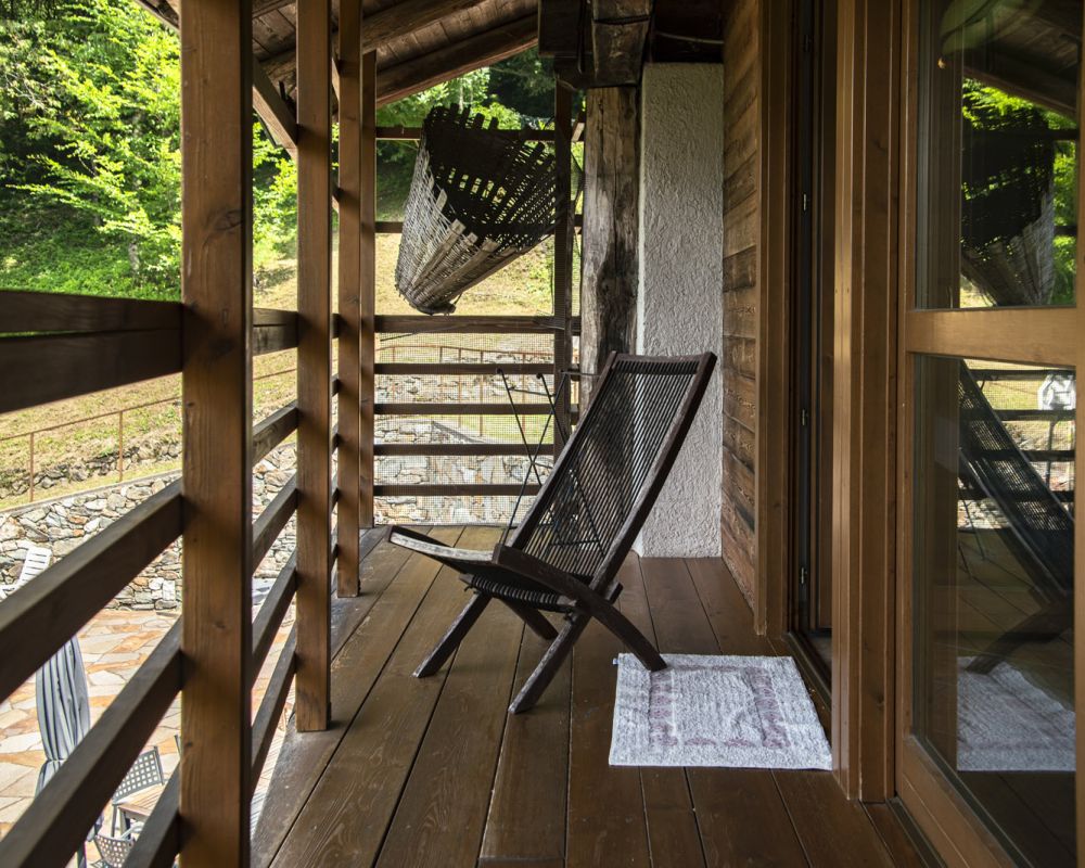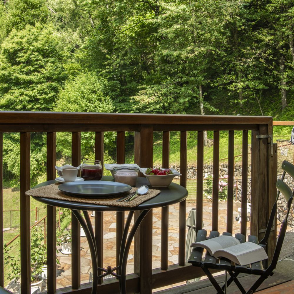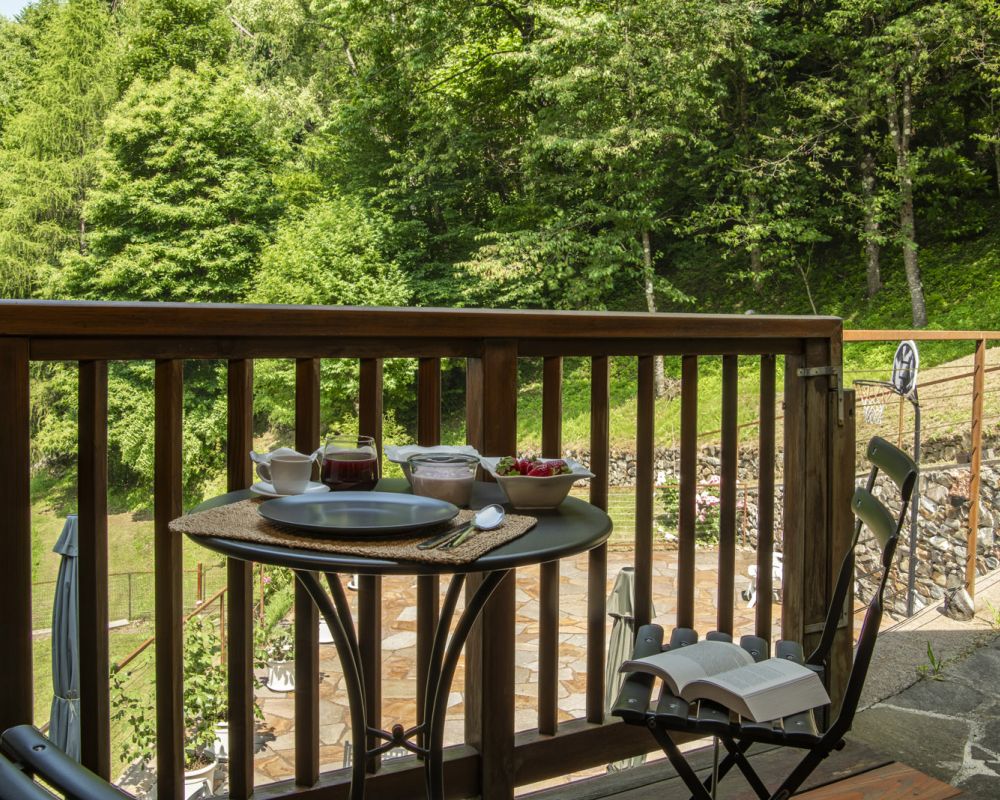 Dal terrazzino in legno potrai ammirare boschi e montagne, rilassarti sotto il sole o leggere in assoluta tranquillità . La cucina ti accoglie con profumi di dolci fatti in casa e colazioni genuine, per iniziare la giornata con energia e serenitÃ