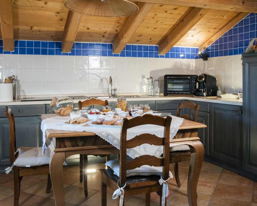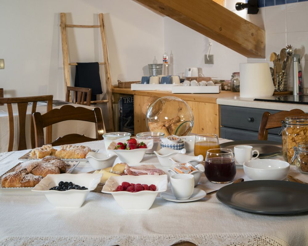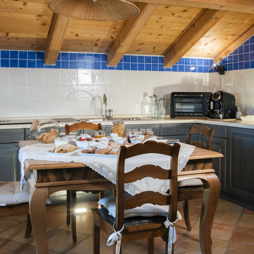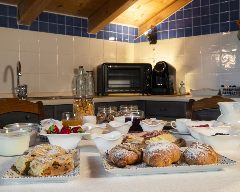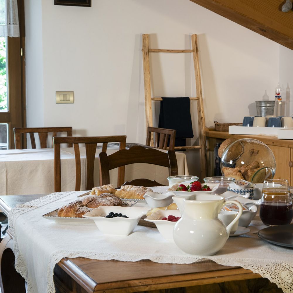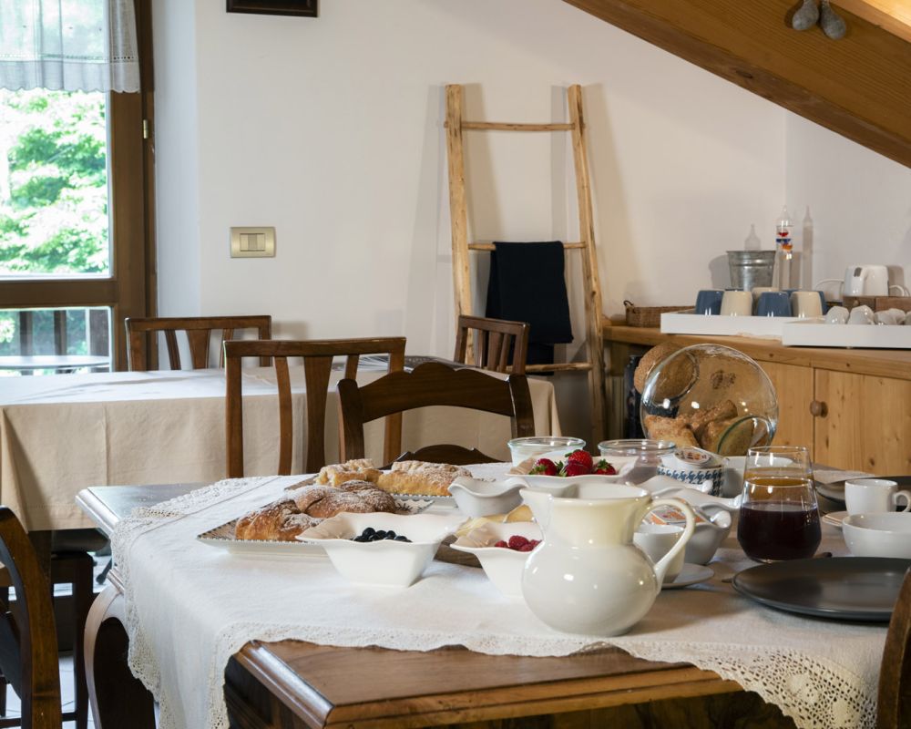 Dal terrazzino in legno potrai ammirare boschi e montagne, rilassarti sotto il sole o leggere in assoluta tranquillità . La cucina ti accoglie con profumi di dolci fatti in casa e colazioni genuine, per iniziare la giornata con energia e serenitÃ