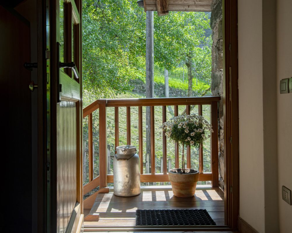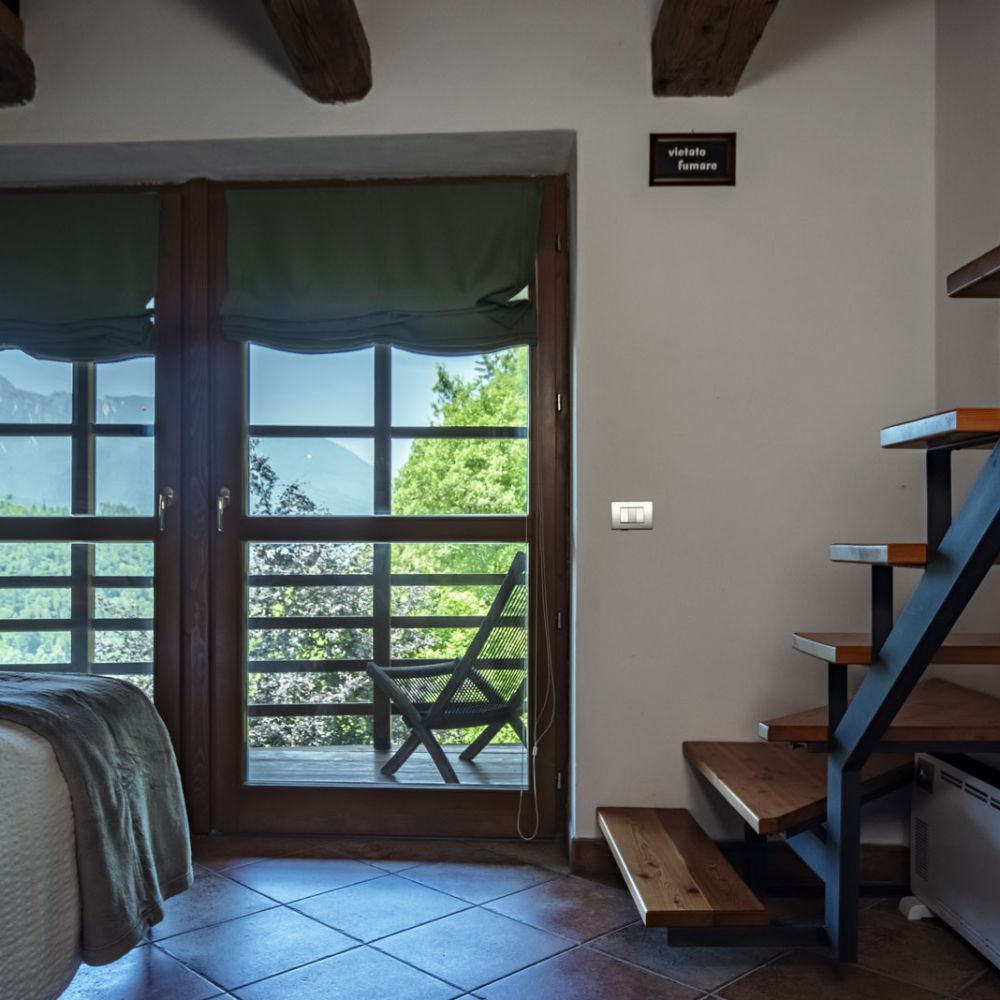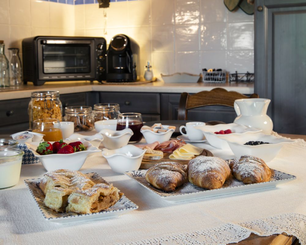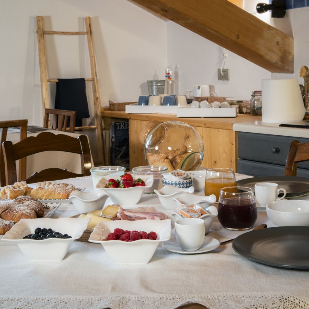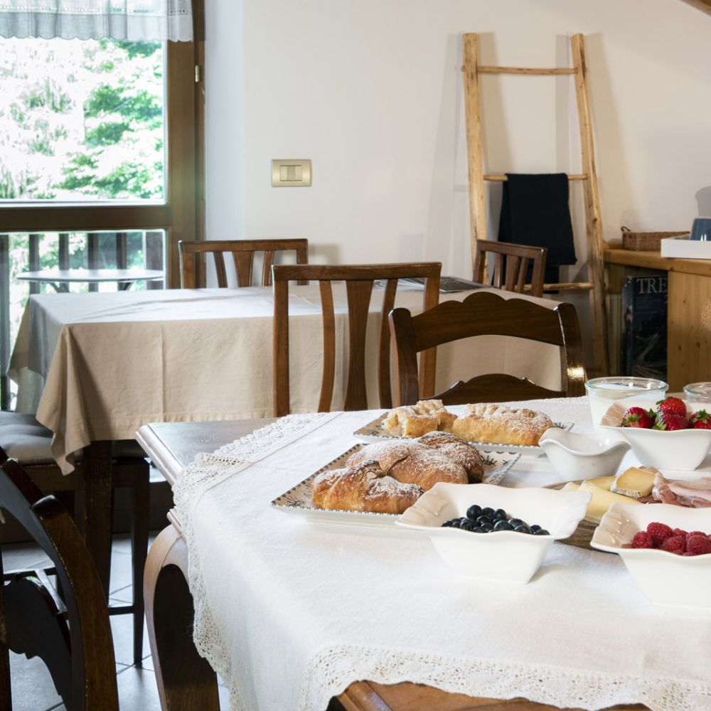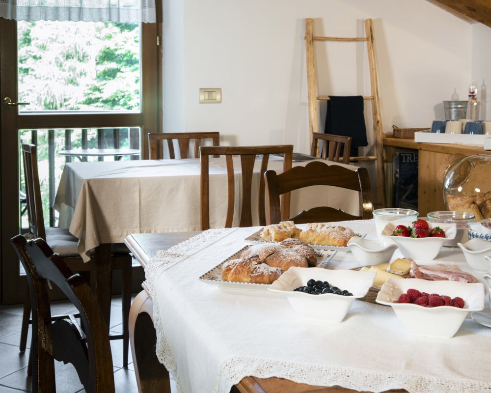 Dal terrazzino in legno potrai ammirare boschi e montagne, rilassarti sotto il sole o leggere in assoluta tranquillità . La cucina ti accoglie con profumi di dolci fatti in casa e colazioni genuine, per iniziare la giornata con energia e serenitÃ