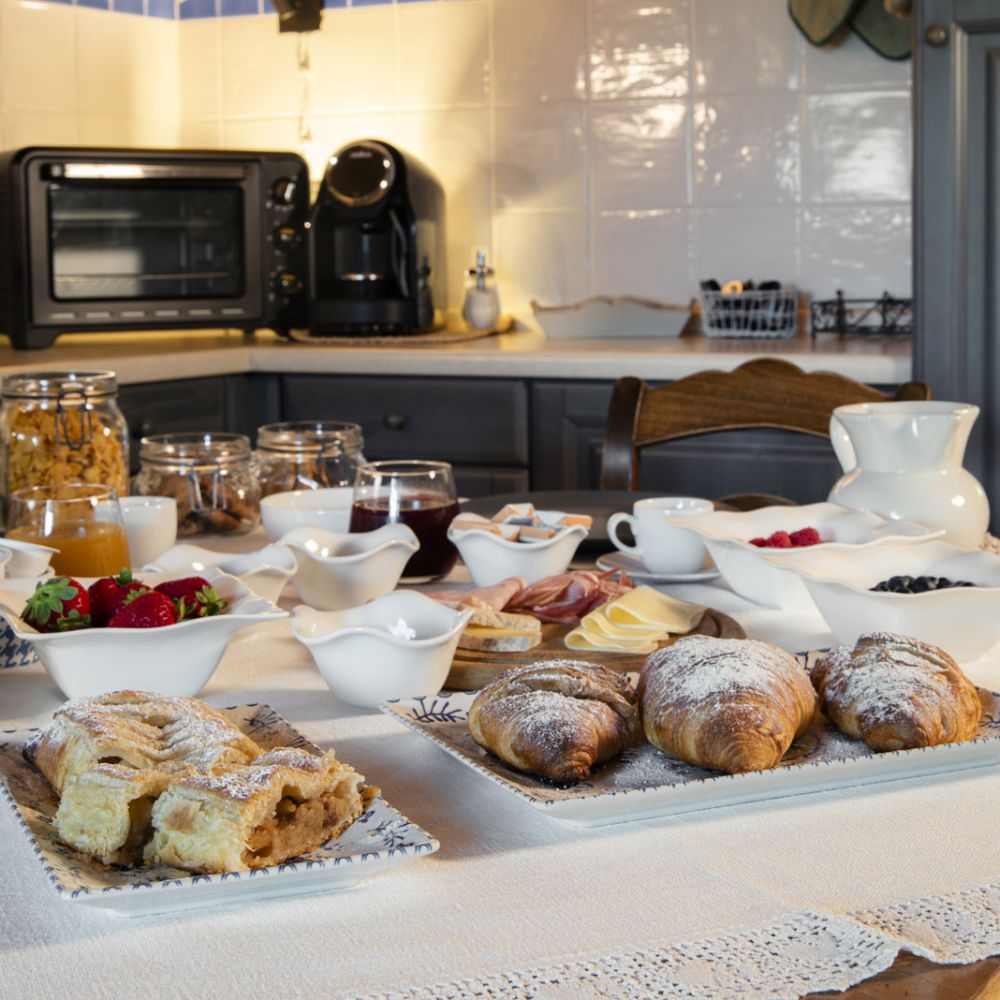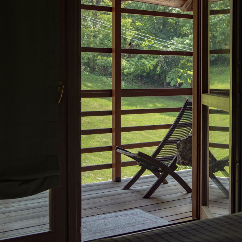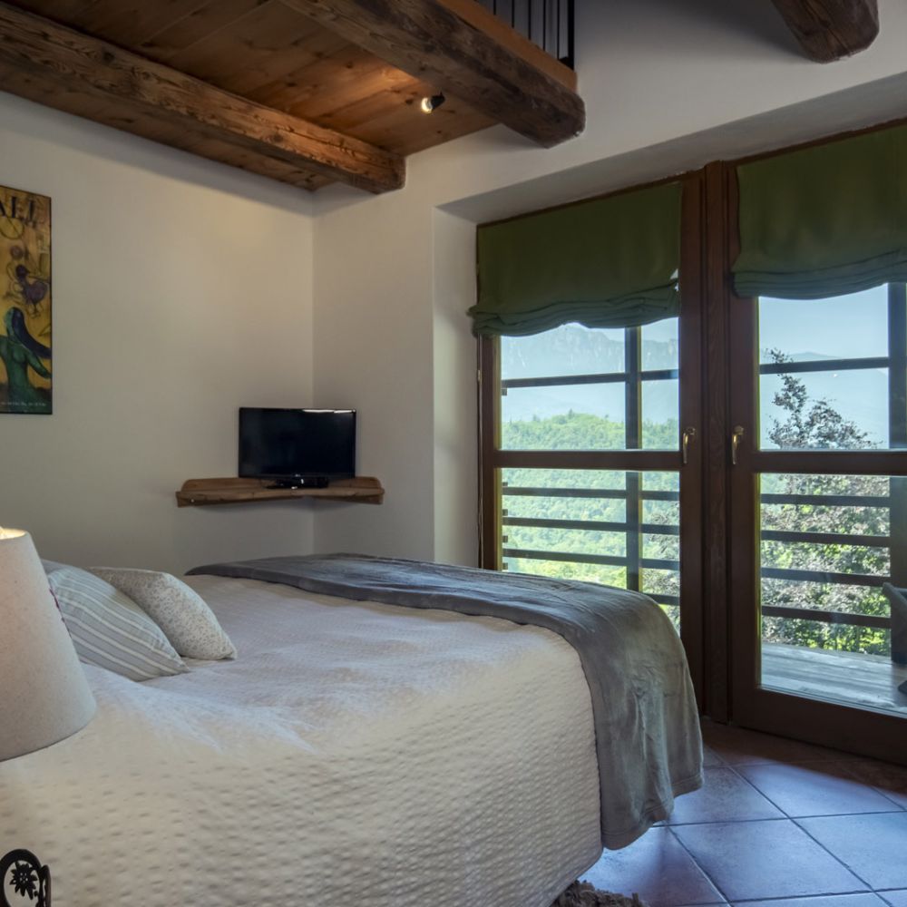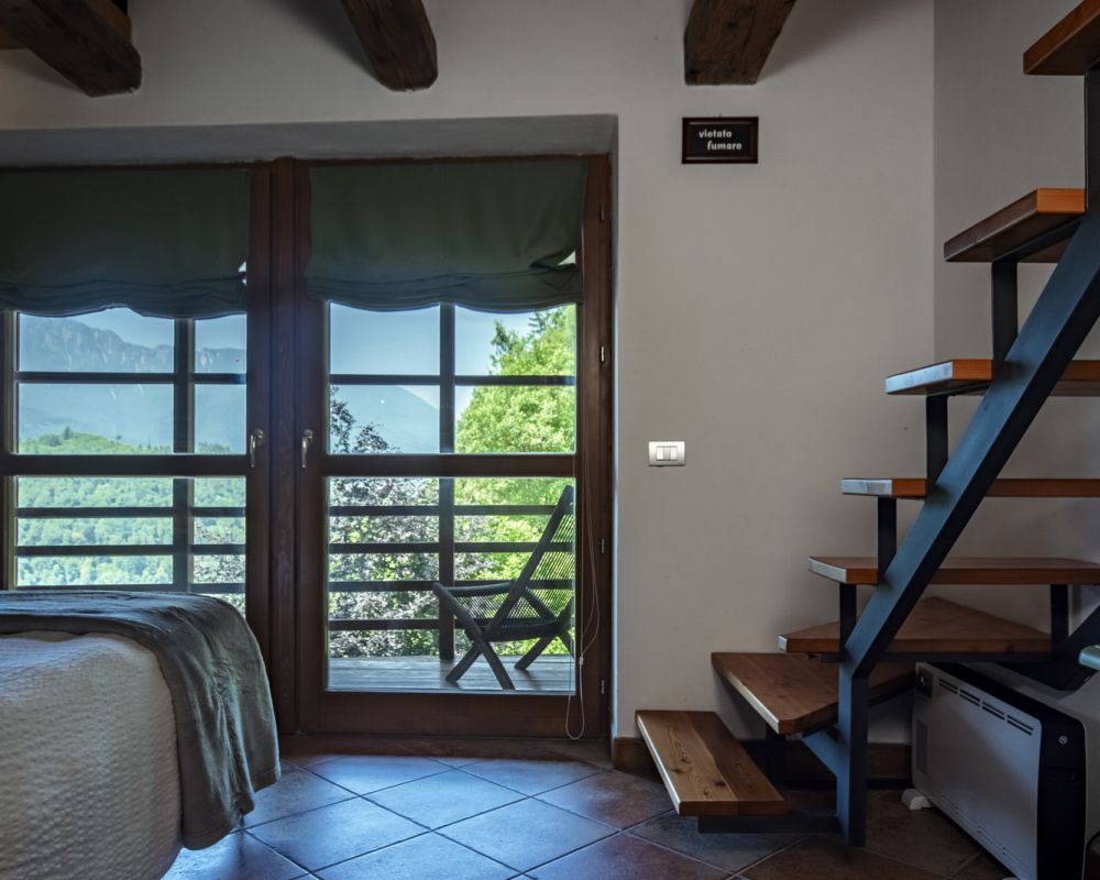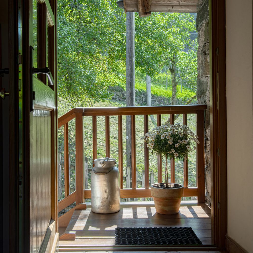 Dal terrazzino in legno potrai ammirare boschi e montagne, rilassarti sotto il sole o leggere in assoluta tranquillità . La cucina ti accoglie con profumi di dolci fatti in casa e colazioni genuine, per iniziare la giornata con energia e serenitÃ