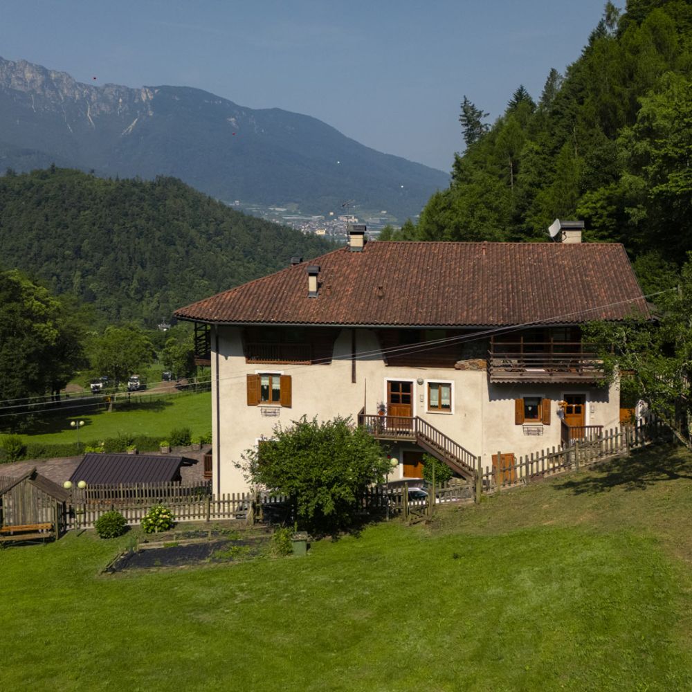 Nel 1998 abbiamo trovato il nostro angolo di paradiso: Maso Zont, un autentico maso trentino risalente alla prima metà del ‘700. Un’antica casa colonica con terreni dedicati all’allevamento, alla coltivazione di ortaggi, frutta ed erbe officinali, un piccolo mondo autosufficiente che oggi è quasi un ricordo. Dopo un attento restauro durato un anno, abbiamo ridato vita a questa dimora, preservandone l’anima rustica con materiali naturali come le travi di legno risanate e il porfido trentino, conferendole nuova freschezza senza alterarne l’identità storica.